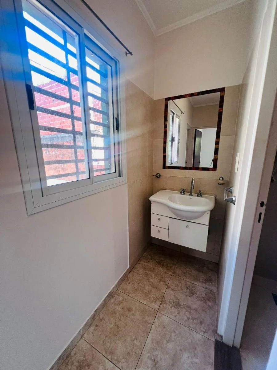 Duplex moderno que cuenta en con living amplio y luminoso , con un baño social , cocina aparte y un sector de lavadero , puerta con salida al patio y cochera cubierta .Cuenta con dos dormitorios en primer piso uno de ellos con aire acondicionado, ambos con placares, baño de uso personal entre otras comodidades . Pequeño patio .
